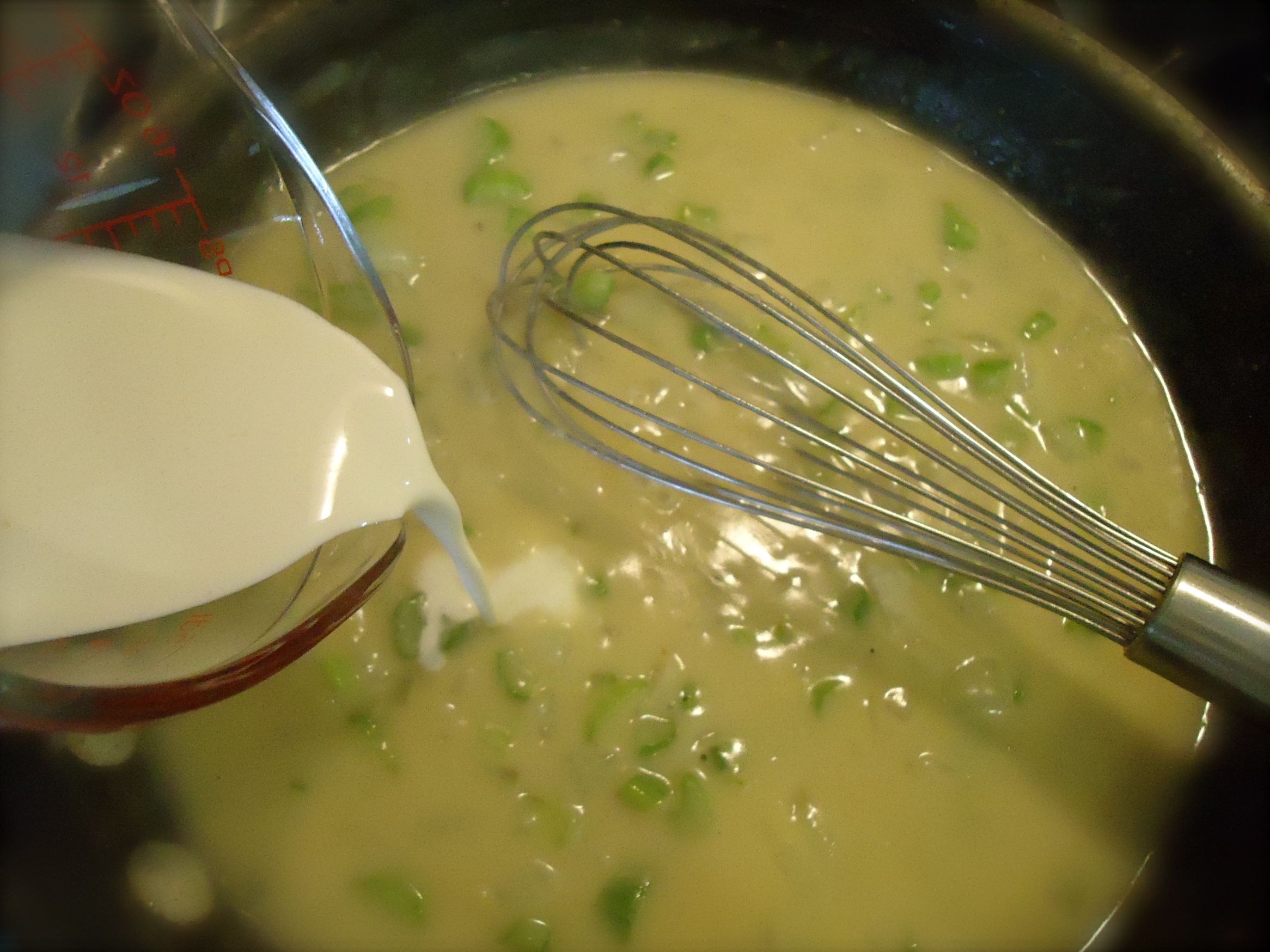 And then add in the cream (after the stock). This "sauce" will hold the pot pie together and adds a lot of flavor!