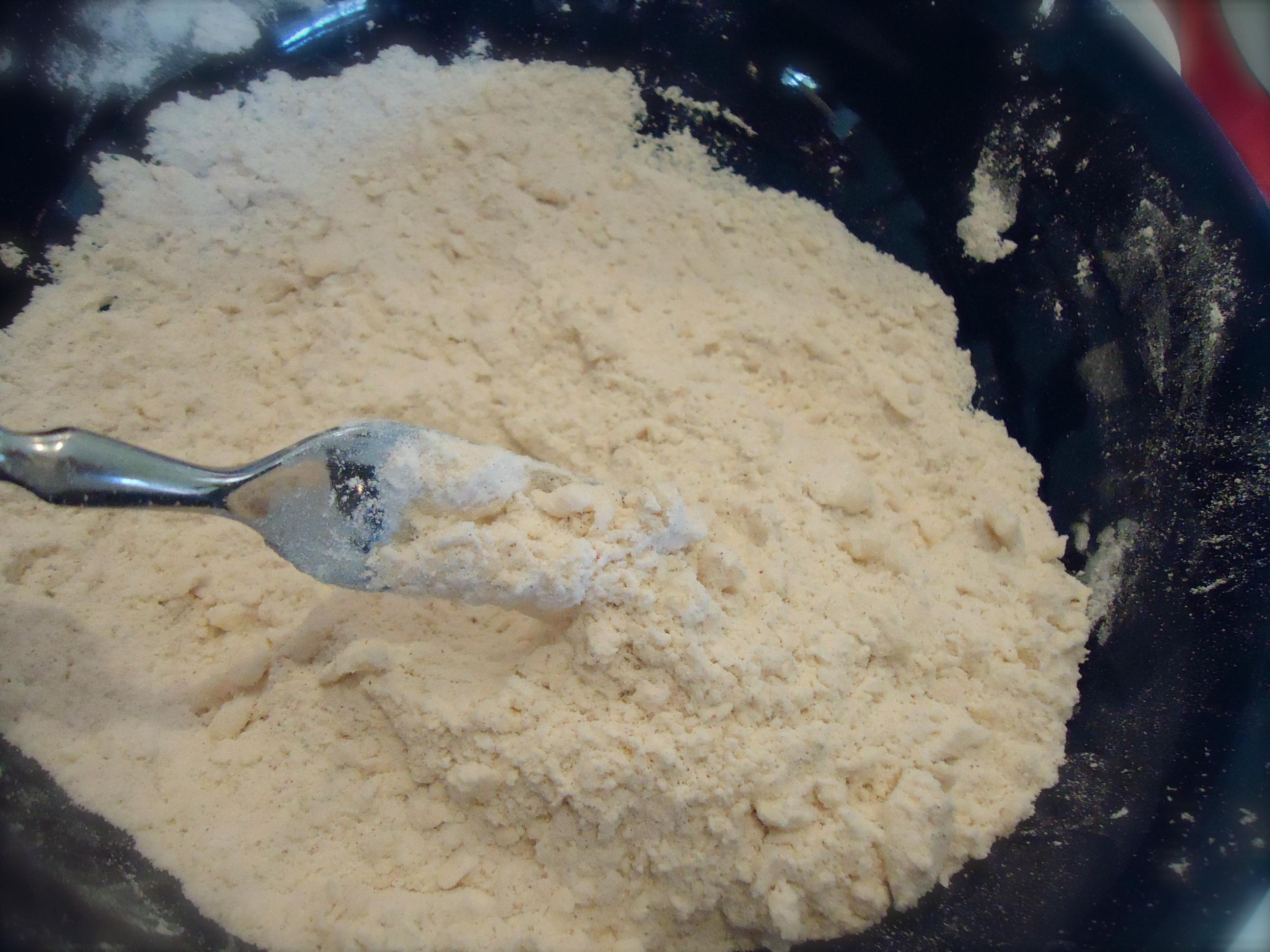 Cut the butter and shortening into the dry ingredients - use a special pastry tool like I have here or a regular fork works great too!