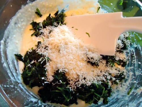 If using frozen spinach cook according to package instructions, cool and drain. Squeeze out as much water as possible. I use paper towels.