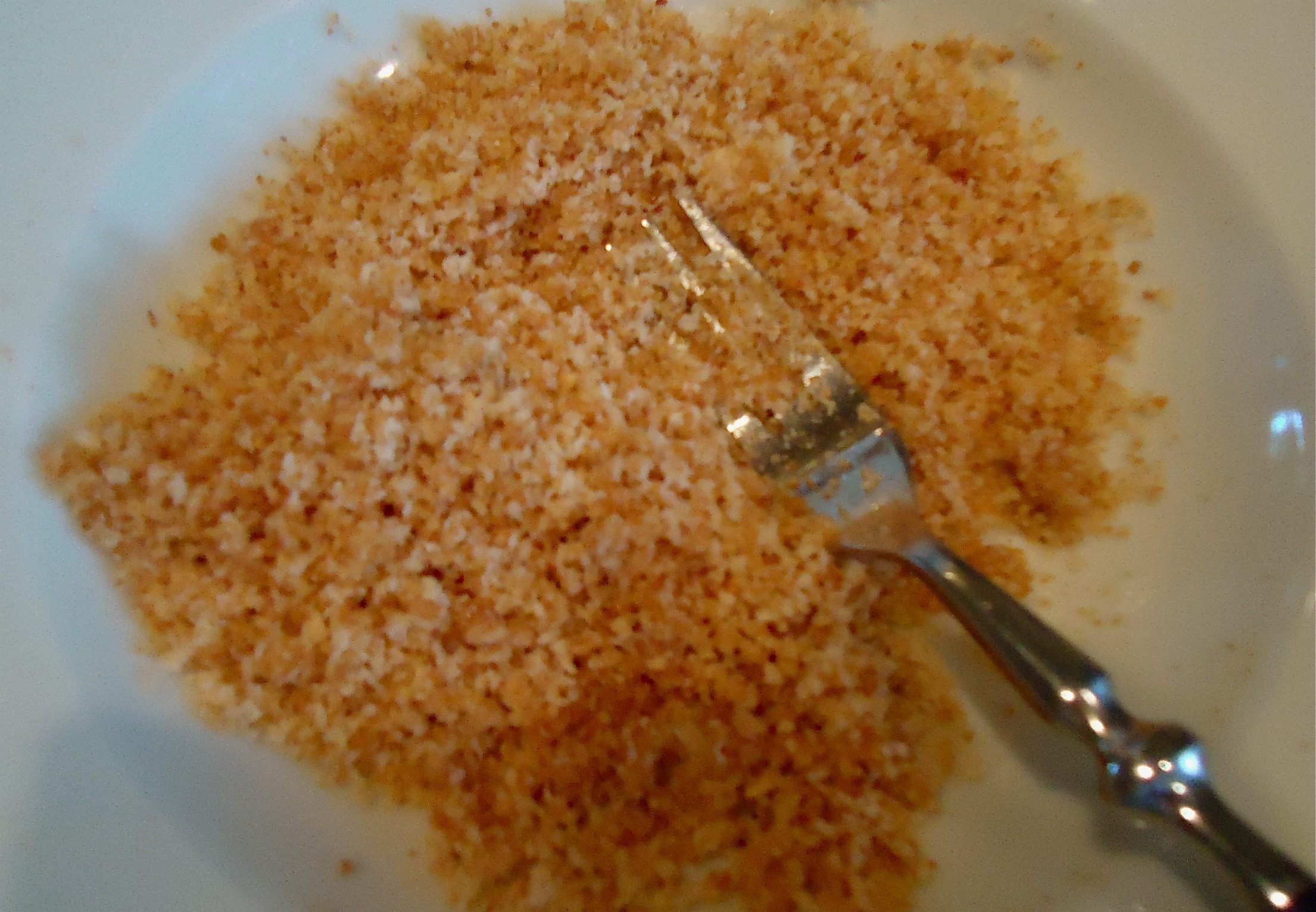 *Butter Crumbs: Toast 2 slices of your favorite lunch bread (I use the heel). Grind in a food processor to a fine crumb. Melt 1 Tbl. butter in a bowl in the microwave. Toss the crumbs in the melted butter. That’s it. I store the butter crumbs in a plastic zip baggie in the frig.
