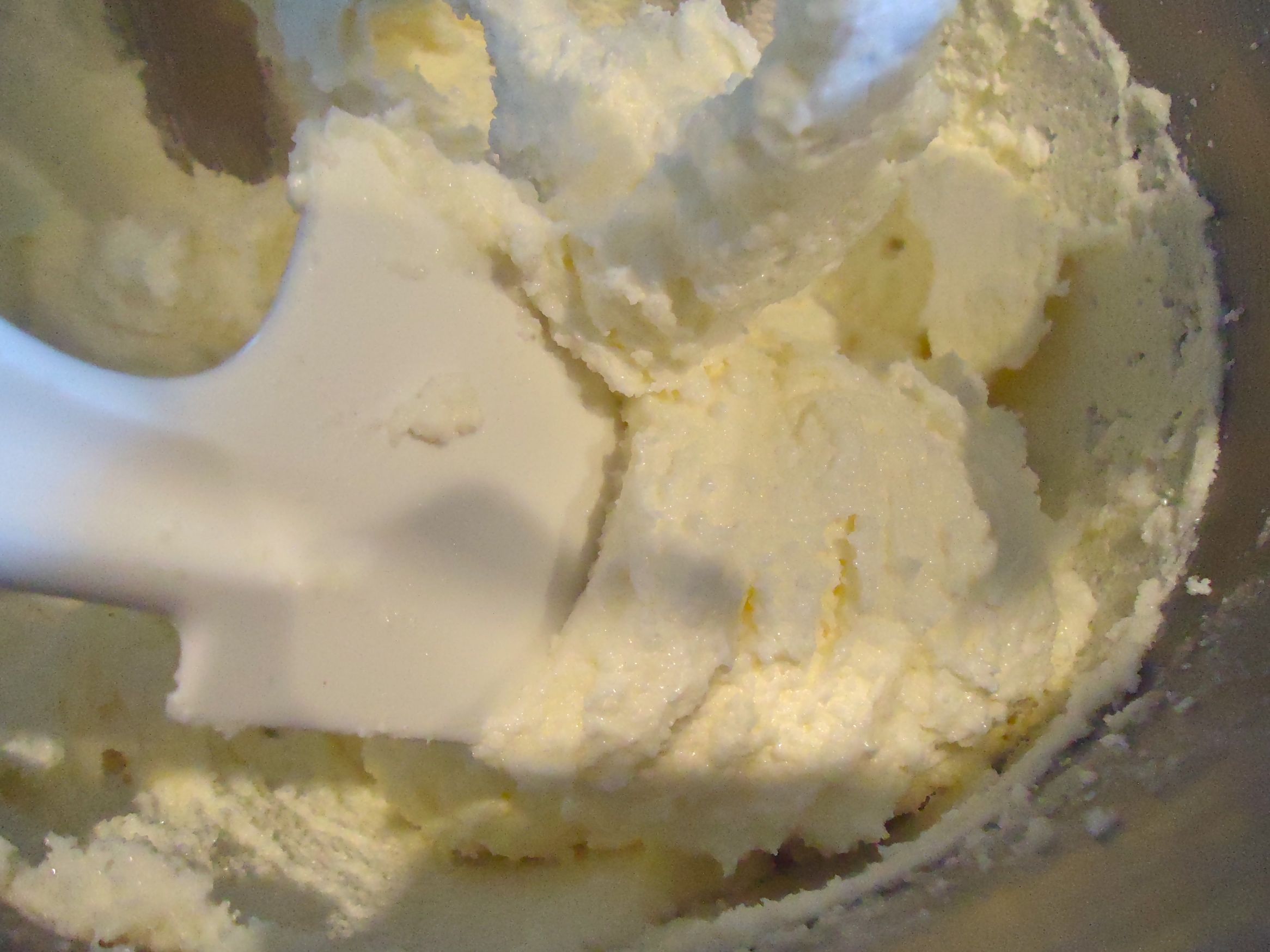 Creaming the butter and sugar is the leavening agent in this cake recipe. This is after only 1 minute of creaming, a long way to go!