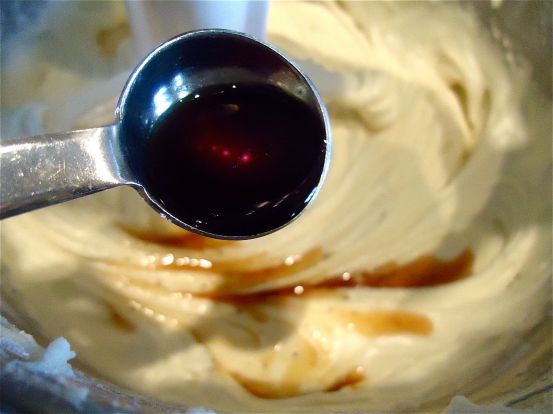 After you alternately add the flour and cream (begin and end with the flour), mix in the vanilla extract. Sometimes my mother uses almond extract instead.