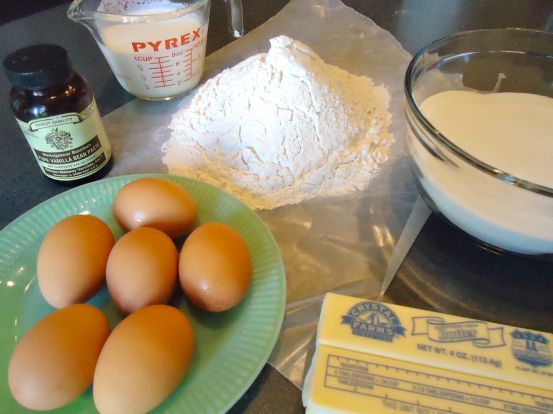 After all eggs have been added, mix in the flour (in 4ths) alternately with the whipping cream (in 3rds) – beginning and ending with the flour. Scrape down the bowl, if necessary. Mix in the vanilla extract and pour batter into prepared pan. Bake in a preheated 300 degree oven for 1 ½ hours. Cool cake on a rack for about 10 minutes and turn out onto a serving platter. Allow to cool completely before covering.