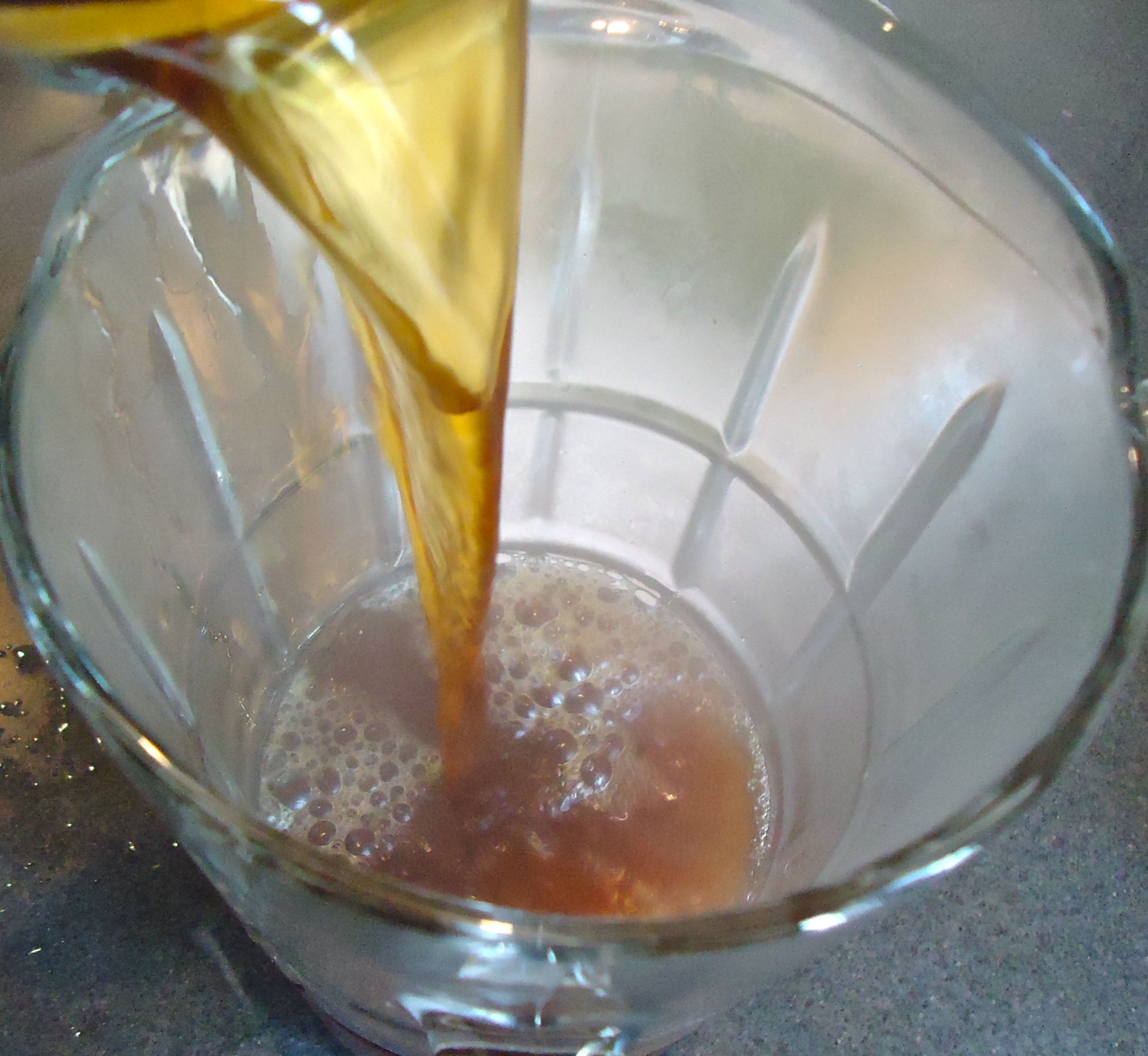 Mix the hot tea with the salt/sugar mixture. Stir.