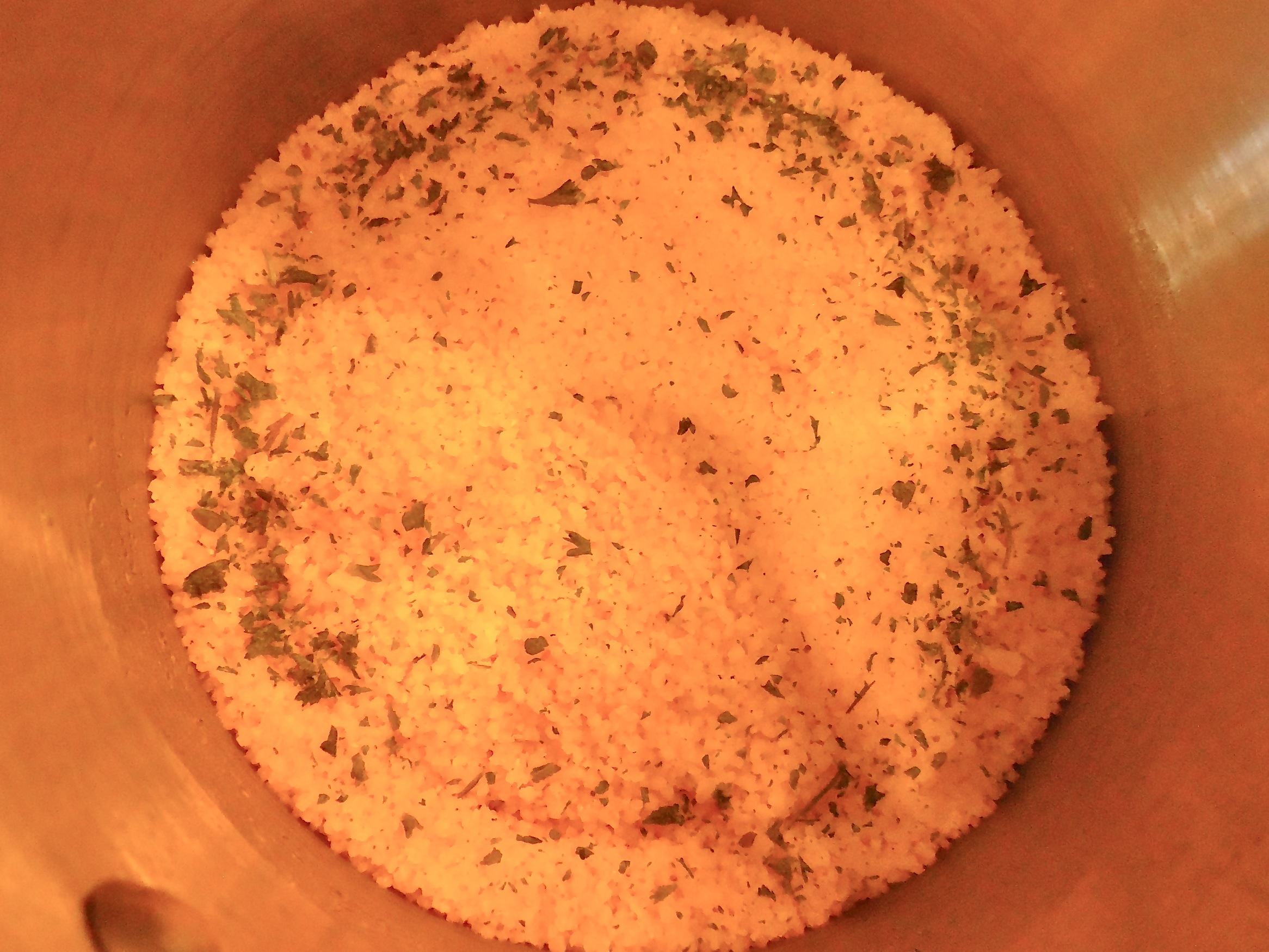 This is what cooked couscous looks like in the pan, before it’s been fluffed with a fork. For those who are not familiar…