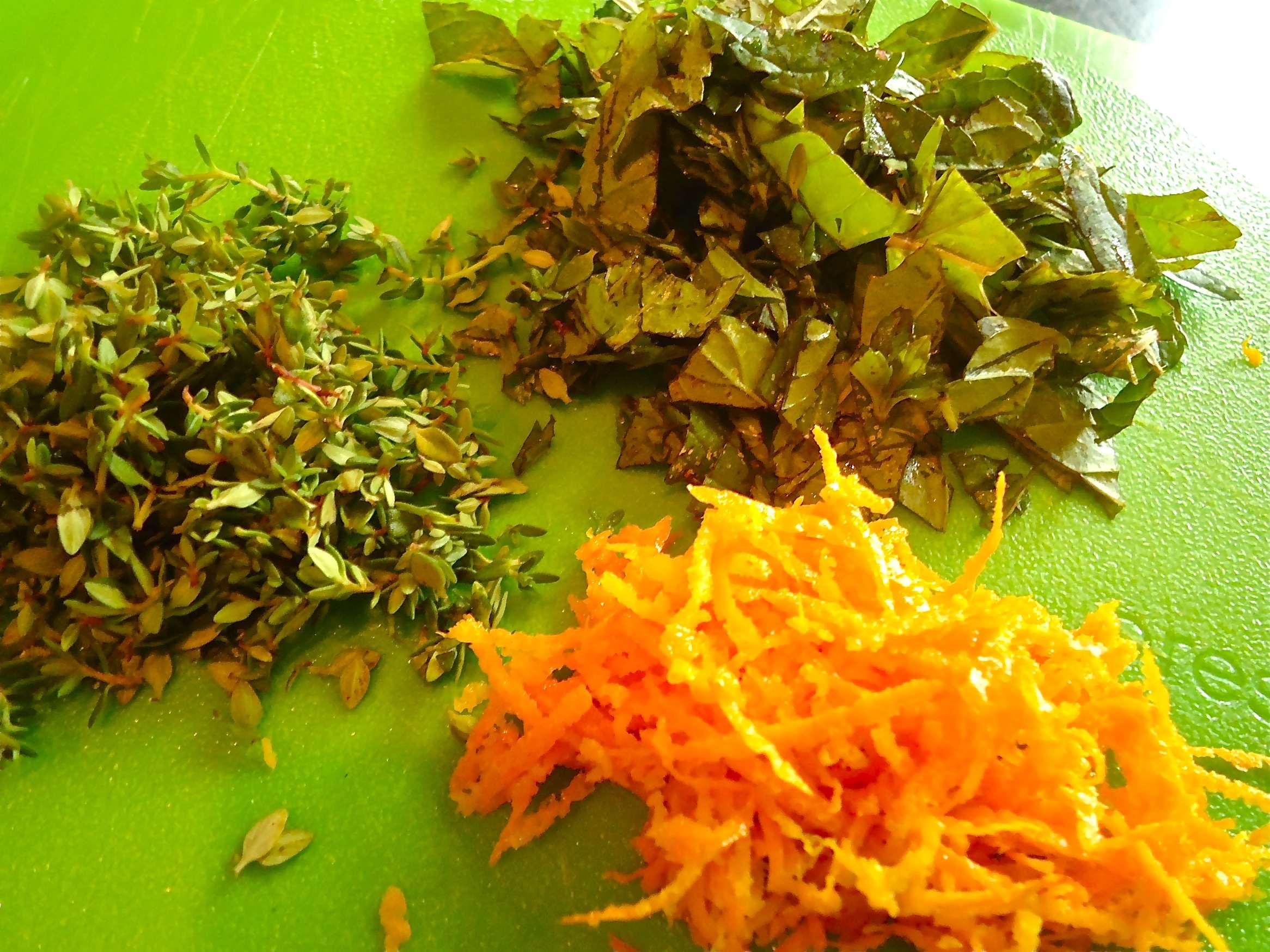 Here is the mint, thyme and orange zest – looks pretty and smells heavenly!