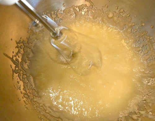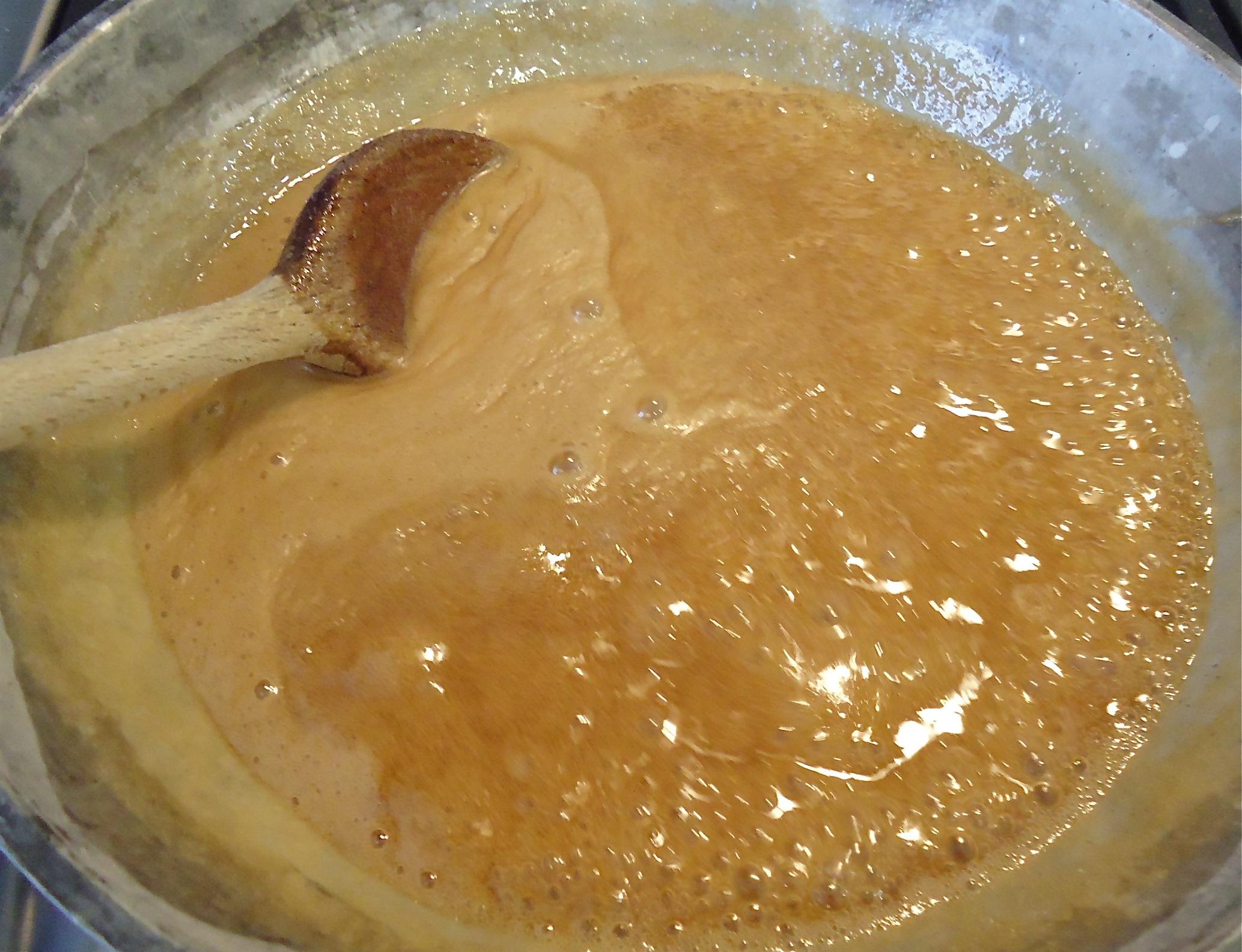 Next turn up the heat but keep stirring. Bring to a simmer and when the mixture starts to foam remove from the heat. Sir in the vanilla extract.