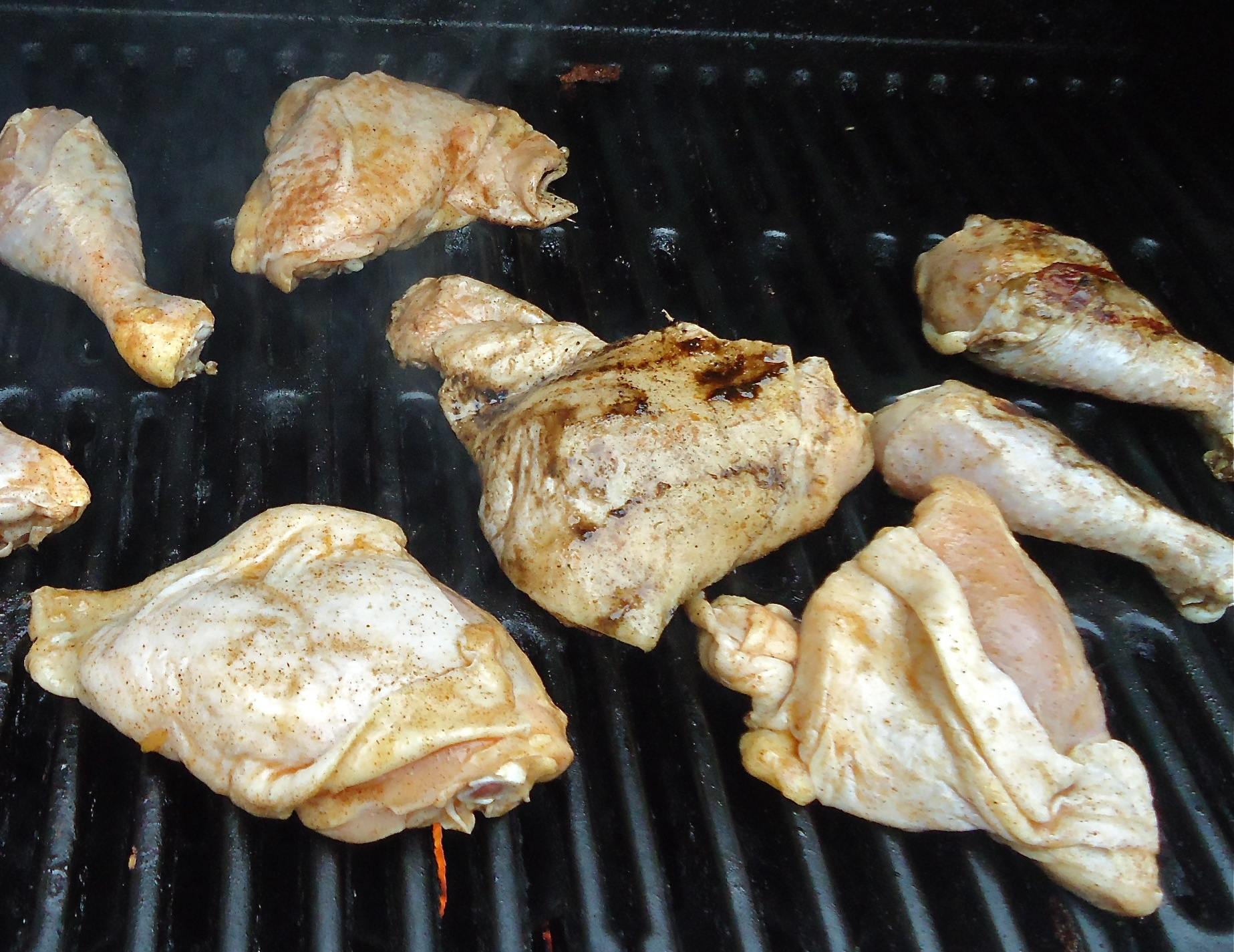 • I also like this with drumsticks and thighs as I find grilled chicken breasts seems to dry out – plus I like the rich flavor of ‘dark meat” chicken. Oh, thighs and legs are less expensive too.