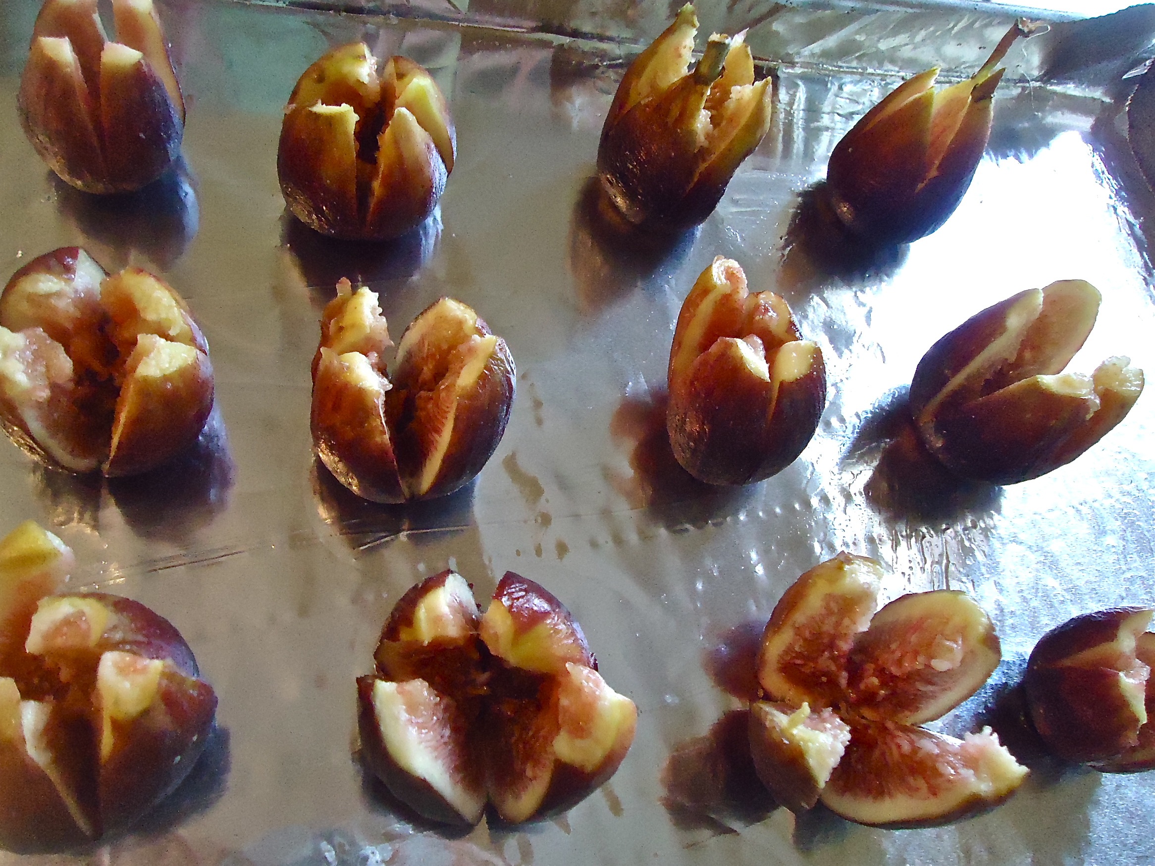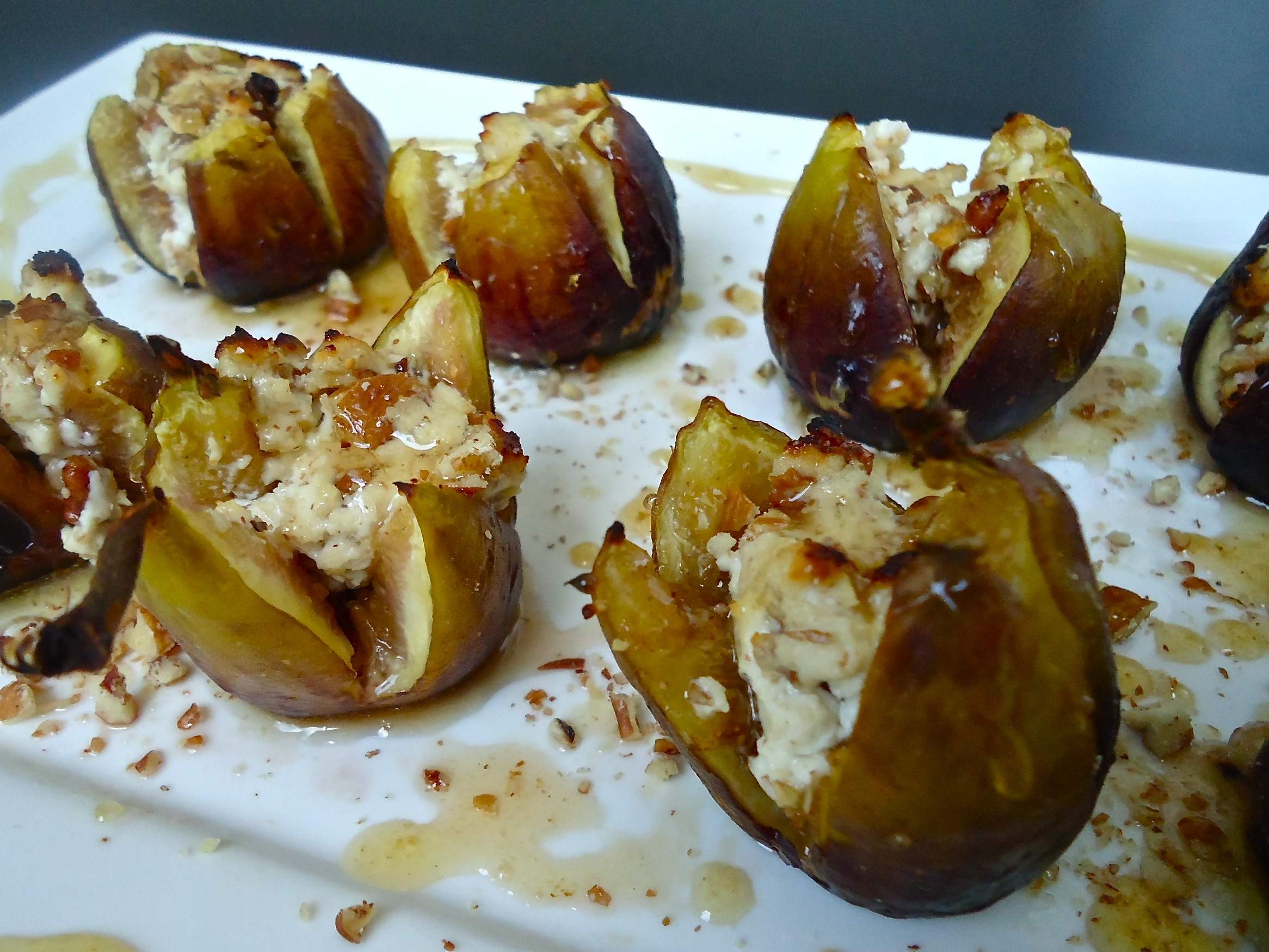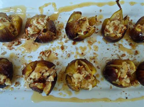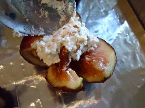 Step 3: Stuff each fig with a bit of the pecan/cheese mixture and roast for a few minutes in a preheated oven.