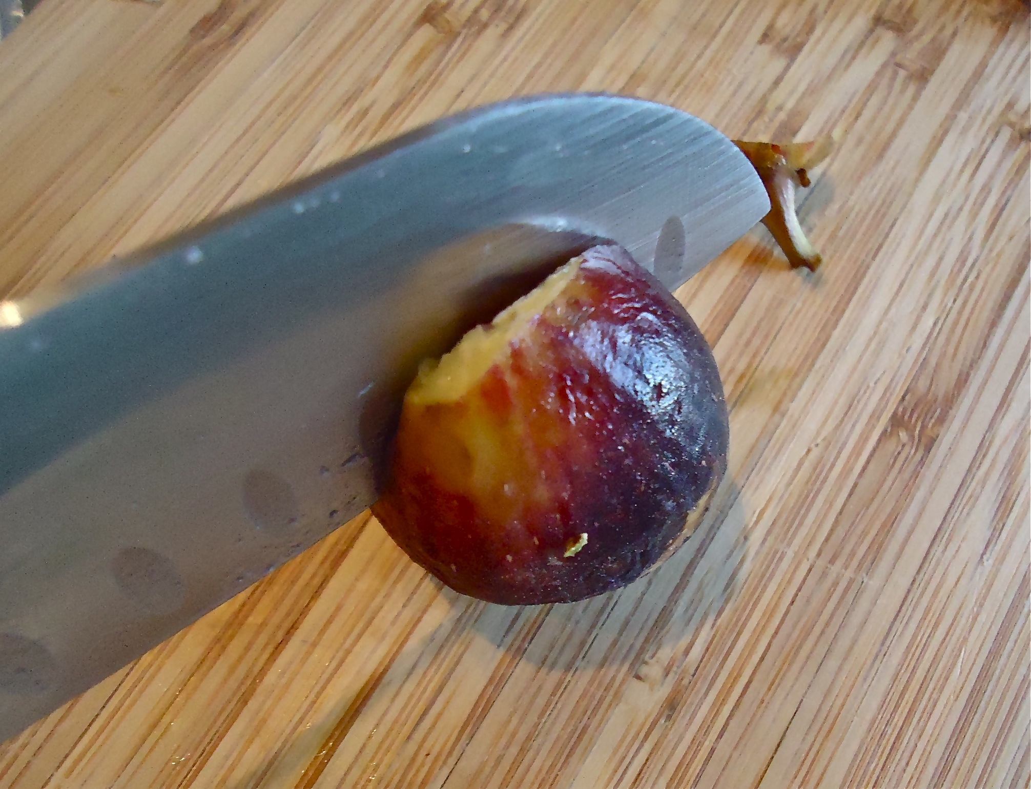 It has certainly been quite the chore finding figs this summer, but I am happy to report that I did find a few of the brown turkey variety last week. Unfortunately this was not enough to make preserves, obviously, and just devouring the whole lot by myself seemed, well, downright selfish. So, I decided to prepare these fresh beauties one of my favorite ways, stuffed with chèvre and toasted pecans and lightly roasted. A flourish of local honey drizzled over the top adds a touch of sweetness. Fresh figs do not need much in the manner of fussy accompaniments or tricky preparations, and I was not about to mess up the delicate flavor of my few precious figgy fruits.