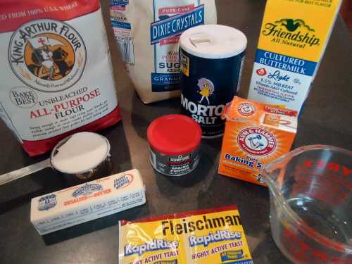 In a bowl combine yeast and water. Allow to dissolve for 5 minutes. Add buttermilk to the yeast mixture and whisk to combine.