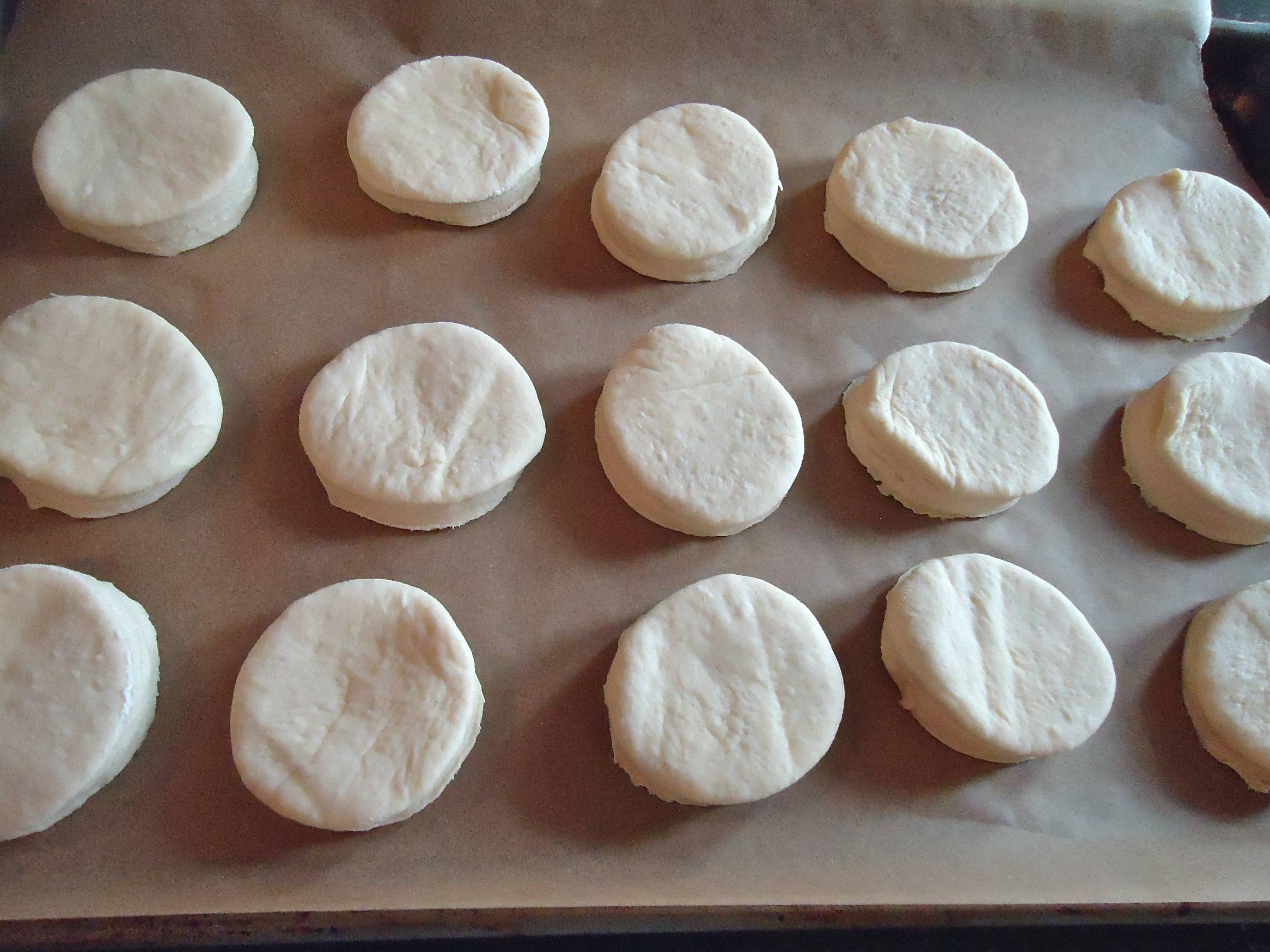 I like this recipe because while it makes a bunch of biscuits, the dough keeps well for 3 days, when covered and refrigerated, and the cut biscuits can be frozen too. I freeze the biscuits on cookie sheets and then place them in airtight bags or containers by the dozen, where they will keep well for a few weeks. Simply defrost the biscuits in the refrigerator overnight and then allow them to rise in a warm place for a half hour or so, and bake.