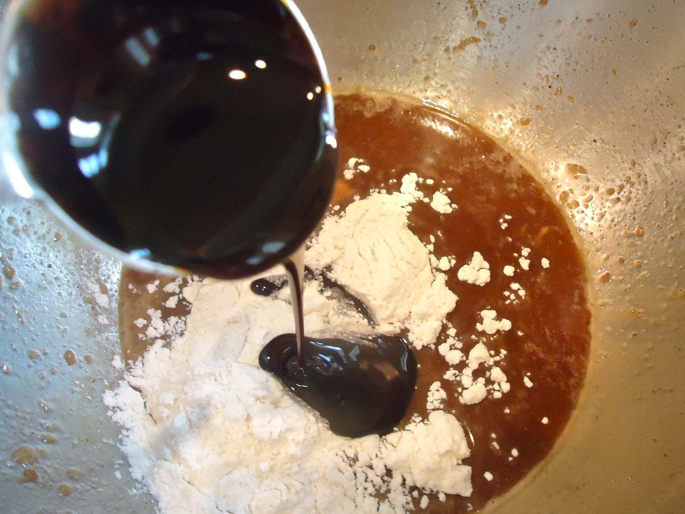 Add the molasses, flour and cornstarch to the ‘syrup’. Stir well or use a whisk.