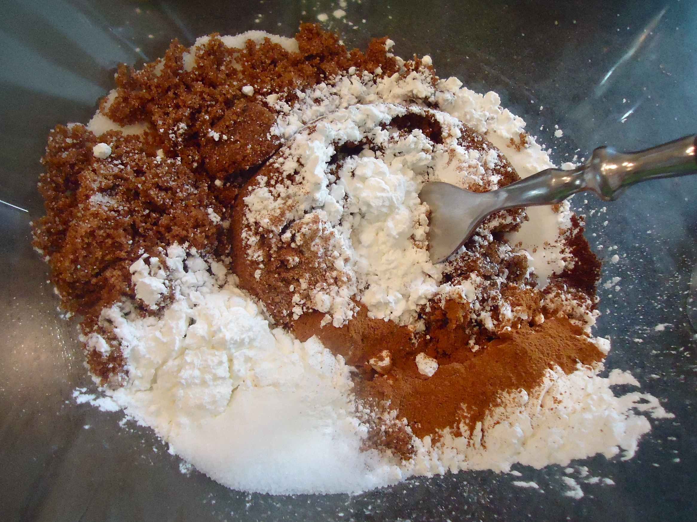 Mix the sugars, the spices and the cornstarch (2 tablespoons).