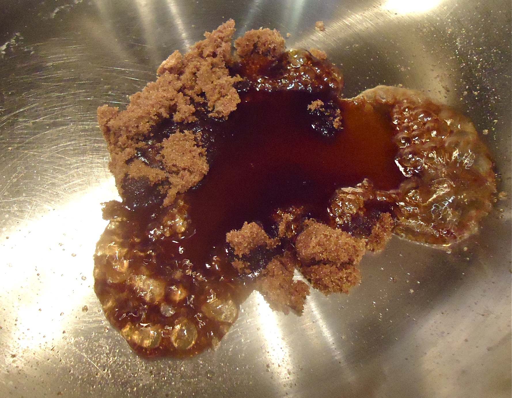 To start the streusal filling melt the brown sugar and water in a saucepan.