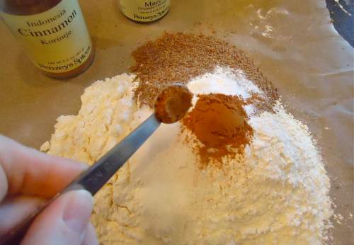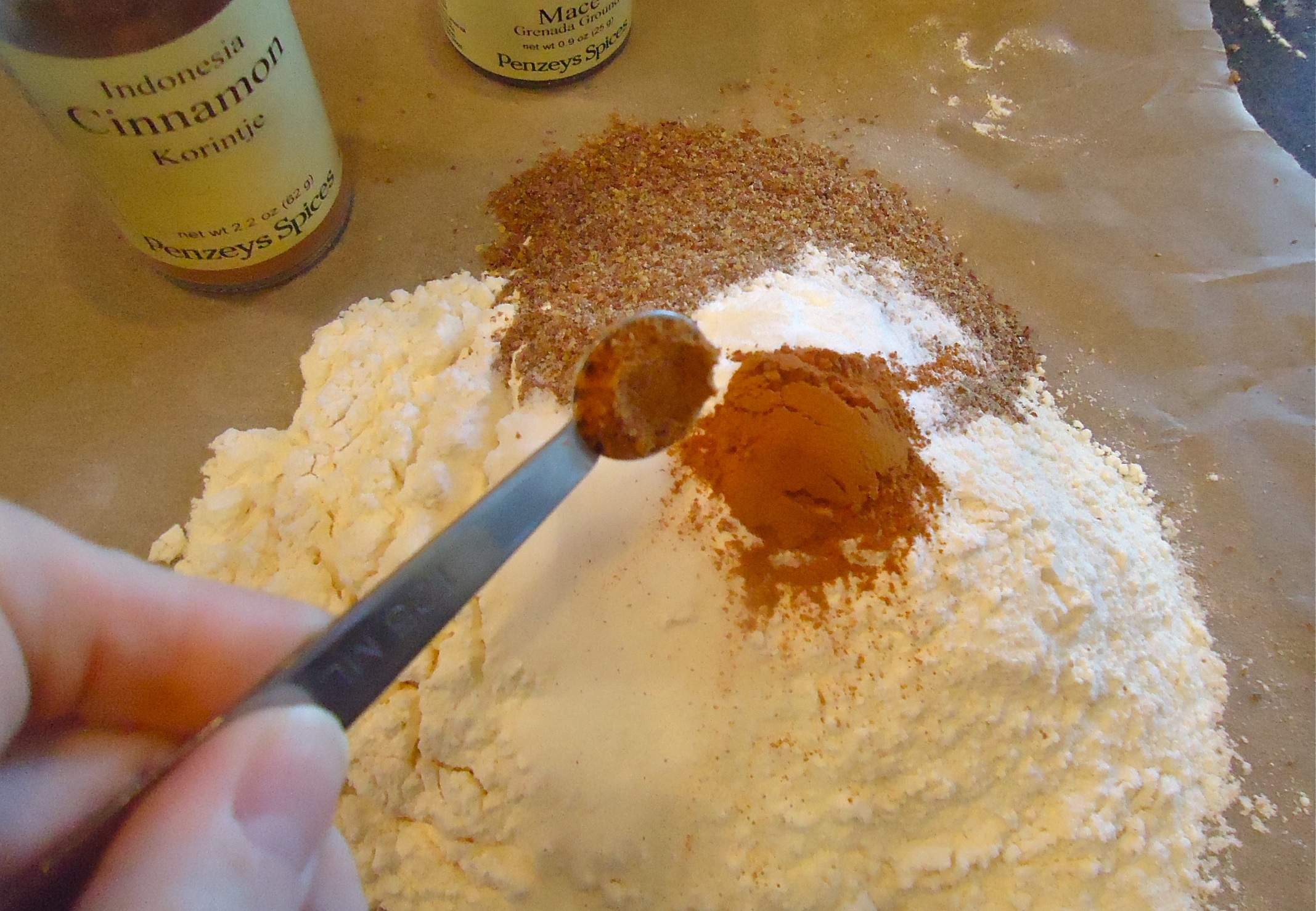 In a bowl or on a piece of parchment paper mix the dry ingredients.