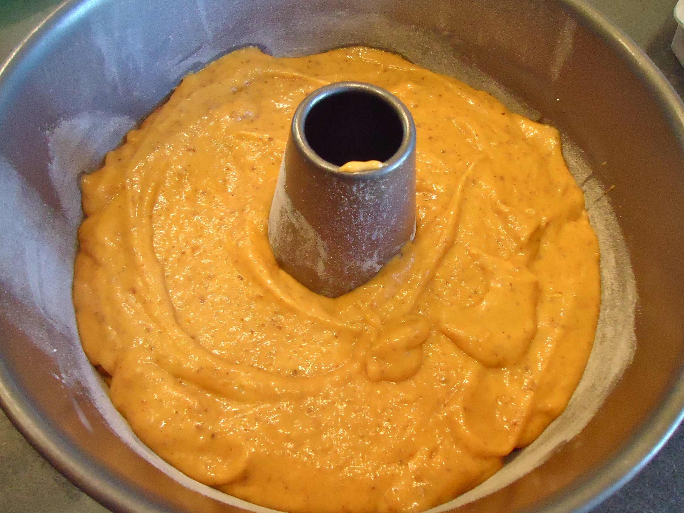First though, let me introduce you to my new tube pan. It has been buttered and lightly floured. So pretty!