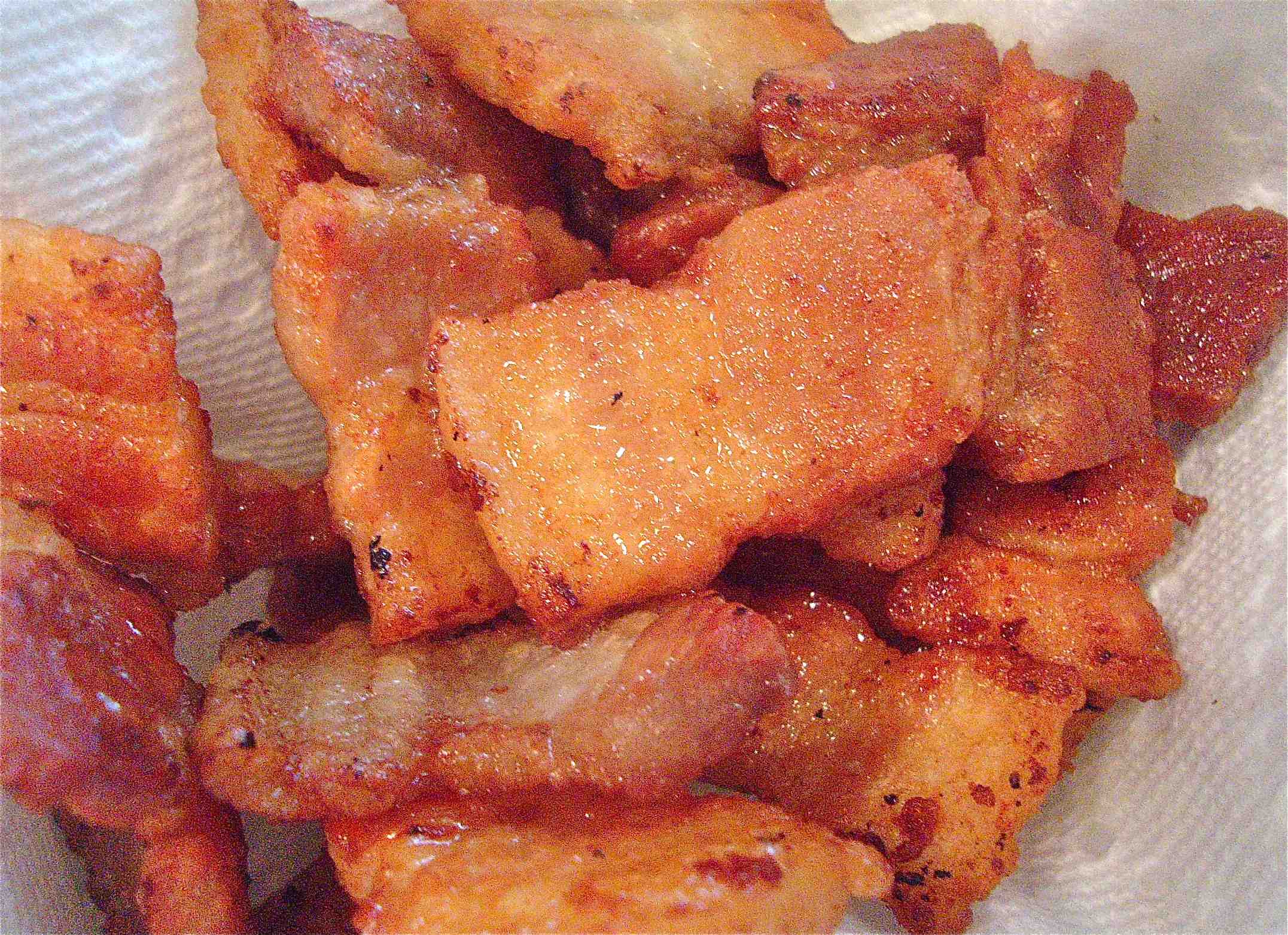 cooked pork belly, drained Published December 3, 2012 at 2153 × 1563 in Down home goodness with braised chicken with leeks ← Previous Next → Drain the cooked pork belly on paper towels. You can top each serving with a few of these or use them in crackin’ cornbread or… if you’re like me just sneak a few as a cook’s treat. Betsy Hinderliter, South by Southeast