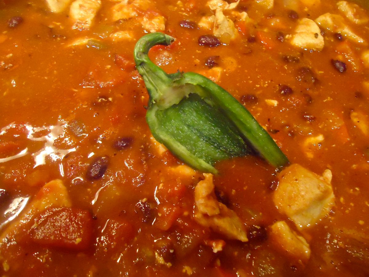 Simmer the chile for awhile longer and add the hot peppers. I’ve always felt that spicy heat is a personal choice. Thus, I use fresh peppers to bring up the heat to my liking and offer condiments to accommodate personal heat and spice preferences.