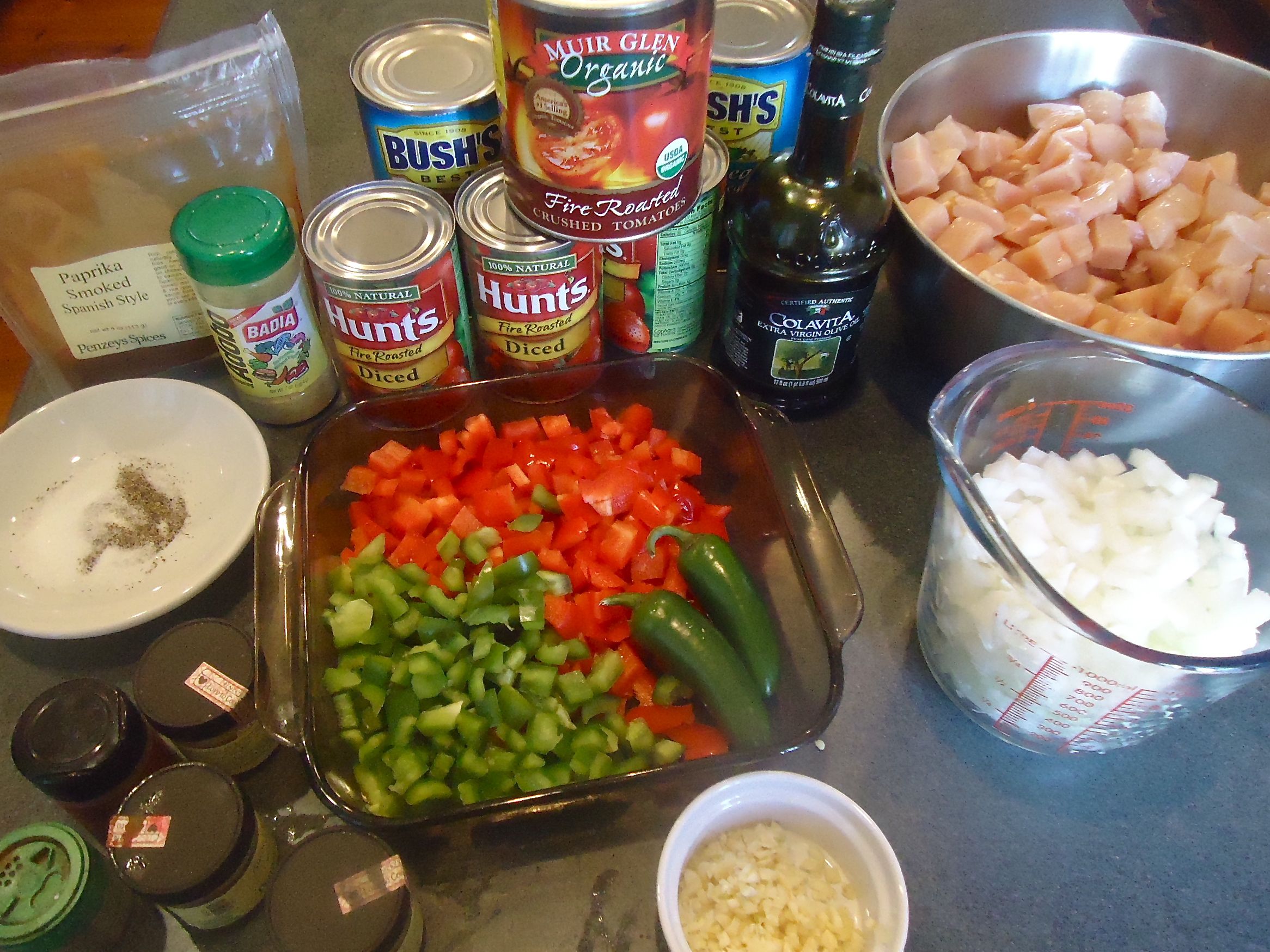 ingrdients, well most of them Published December 20, 2012 at 2332 × 1749 in Hindo’s holiday* black bean chicken chili satisfies. ← Previous Next → The ingredients for this chili – well almost. Missing are the stock/broth, the beer and the other large can of tomatoes. Oops! Betsy Hinderliter, South by Southeast