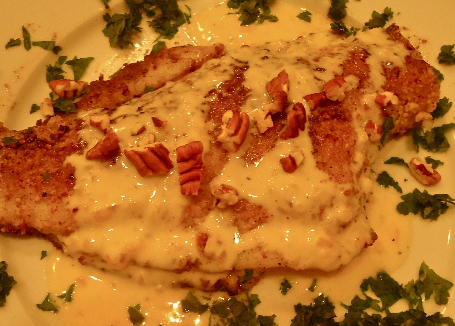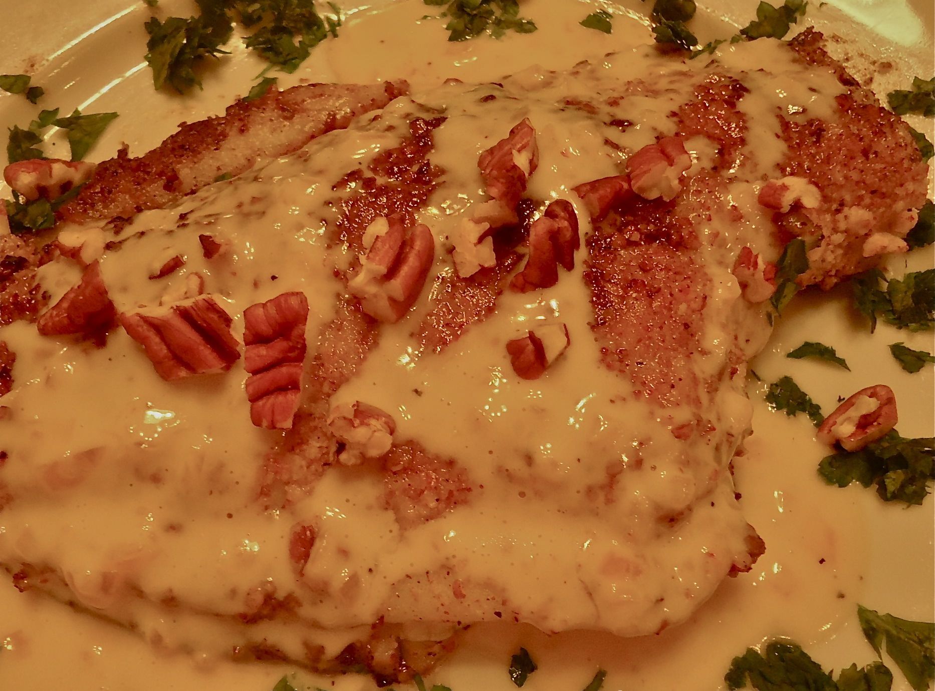 Serve fillets with the warm beurre blanc sauce drizzled on top and a sprinkle of the remaining chopped pecans.