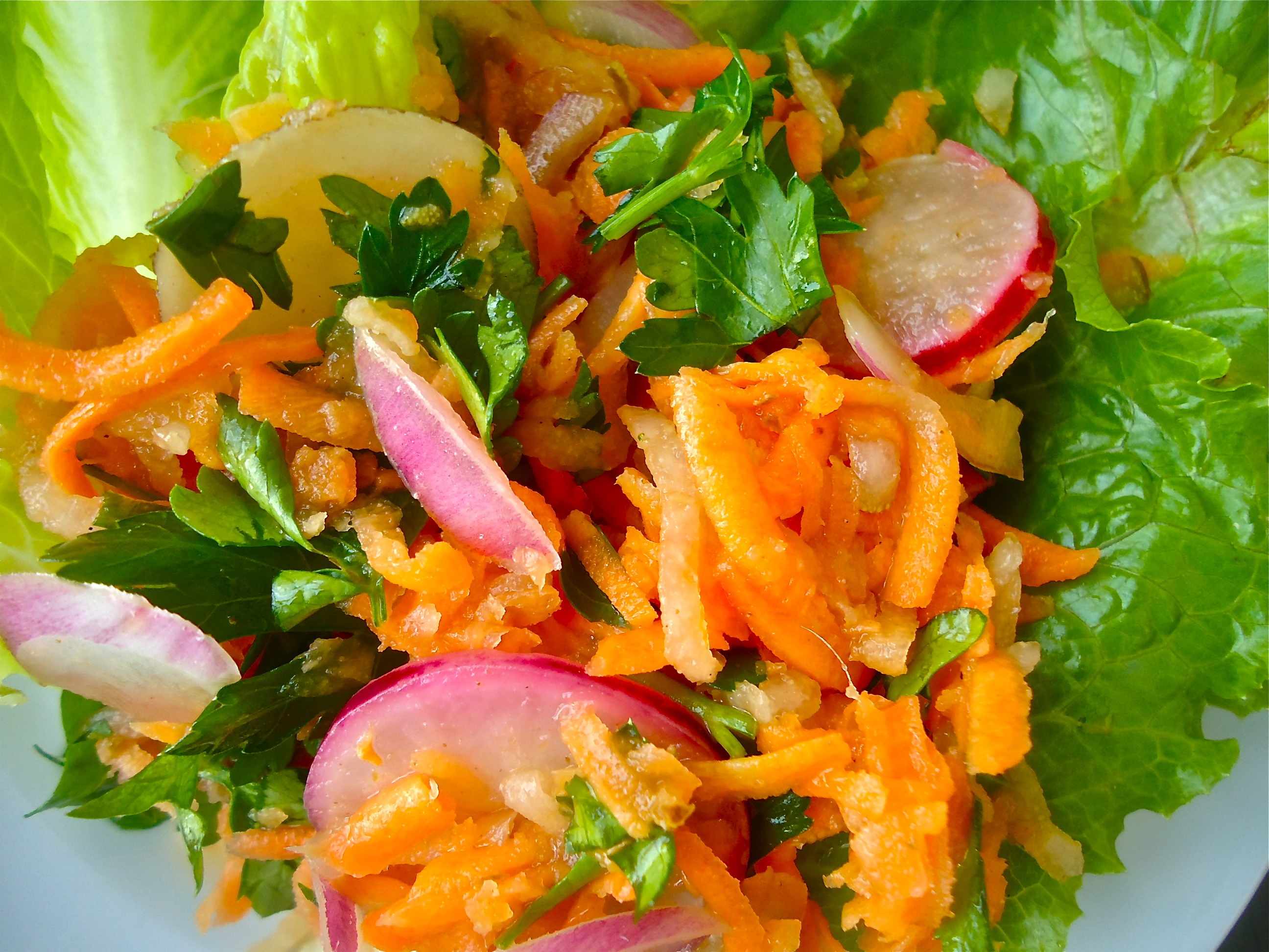 Nice as a side for southern-favorite barbeque cookouts or as a first course with grilled shrimp or fish. Uses winter time in-season produce like carrots, pears and radish too!