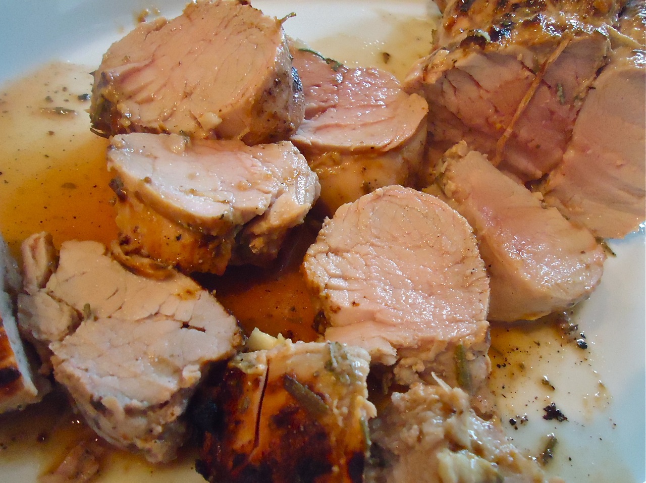 Once the chops are seared on both sides cover the grill pan (or remove to a covered roaster) and allow to cook until you reach your desired doneness. I like my pork slightly pink in the center. And keep in mind that meats continue to cook even after you remove fro direct heat.